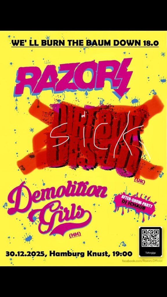 That was somewhat an ill-fated Thursday evening: Initially set as “The Pissed Ones & The Outcasts” it was drawing high desires (because of The Outcasts) but then the guys from sunny Belfast had to pull their short run across Germany due to health issues.