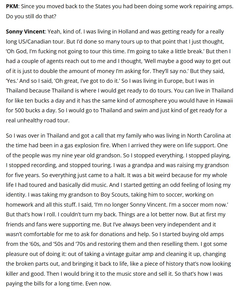 And it is full circle back actually: Sonny always played high octane slash and burn Rock and fucking Roll. And that is what he is hopefully continuing to do (in whatever setup and form).